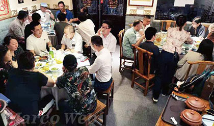 上海B级美食会的6月定例会于6月12日周六晚上在“孔乙己酒家”举办,当天有24位参加者。这是本店在文庙的人气店的三号店。大家一边品尝绍兴黄酒和绍兴美味佳肴,一边愉快地进行交流。