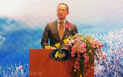 2023年日本国天皇陛下63岁生日庆祝招待会于2023年2月21日周二晚在花园饭店隆重举行。中央放置了天皇皇后两陛下的照片。赤松秀一总领事・大使作了致辞。还有日本文化和旅游以及食品的展示。