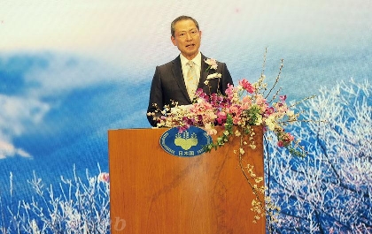 2024年日本国天皇陛下64岁生日庆祝招待会于2024年2月23日周五晚在花园饭店隆重举行。会场中央摆放了天皇皇后两陛下的照片。赤松秀一总领事・大使作了致辞。此外,还有日本文化、旅游和食品等方面的展示活动。