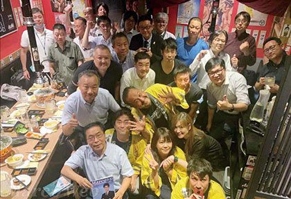 店“喰天家”召开。桥本彻也会长和大阪府上海事务所的南浦秀史所长作了发言。另外,还有新人自我介绍,归国者离别致辞和名片交换等的活动。